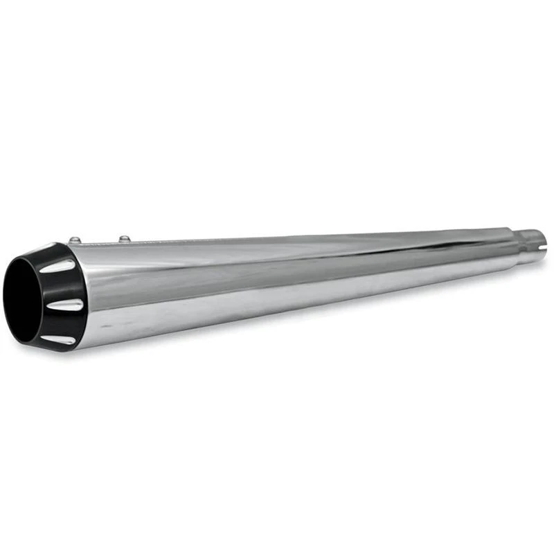 - Stepped headers, true reverse-cone megaphone muffler and a removable baffle with a polished billet end cap