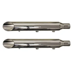 - Slip-on mufflers feature 16-gauge steel construction with polished chrome finish
