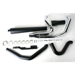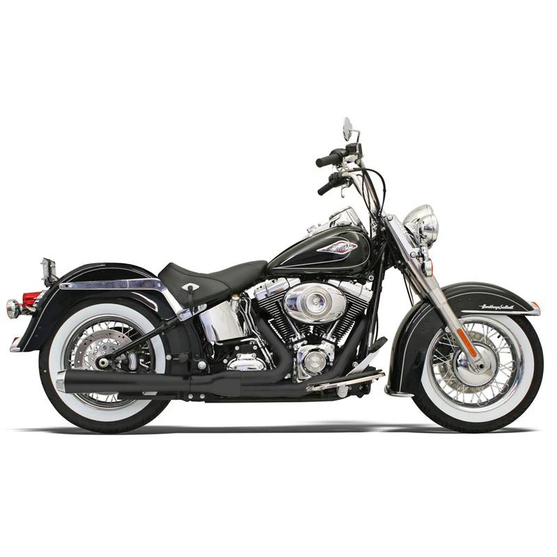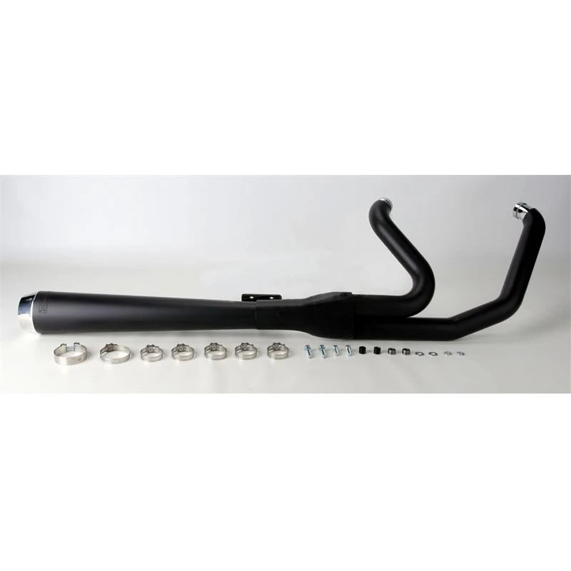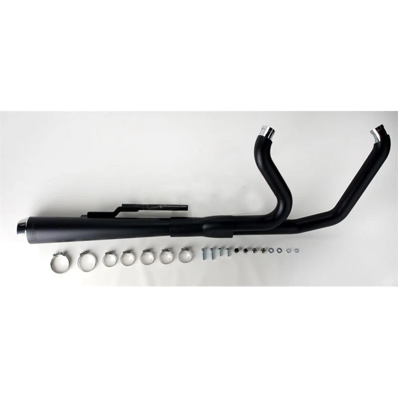 2:1 Performance exhaust system featuring stepped headers, true reverse cone megaphone muffler and a removable core with a billet end cap. Come with Full heat shields available for most models. Moderately aggresive exhaust note. PRO STREETS for all softail models. Shotgun design featuring stepped headpipes and tunable/replaceable flow-through baffles. Avialable in different styles such as turn out ends or with billet end caps. Expect an aggressive sound. Sweeper Style Pipes are a radical radius bent short headpipe with a strong exhaust sound.