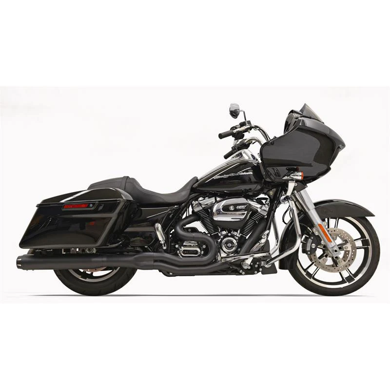 2:1 Performance exhaust systems feature stepped headers, and choice of muffler options with either a true reverse cone megaphone muffler or a 4″ straight can muffler with a removable core with and polished billet end cap. Heat shields available for most models.Harley® riders can realize the benefits of a “True Dual” crossover system that performs as good as it looks. Bassani’s “True Dual” Power Curve. Designed to give proper port angle and tuned rear pipe length. The Bassani Power Curve offers improved low-end torque, appearance and an unmistakable exhaust tone.