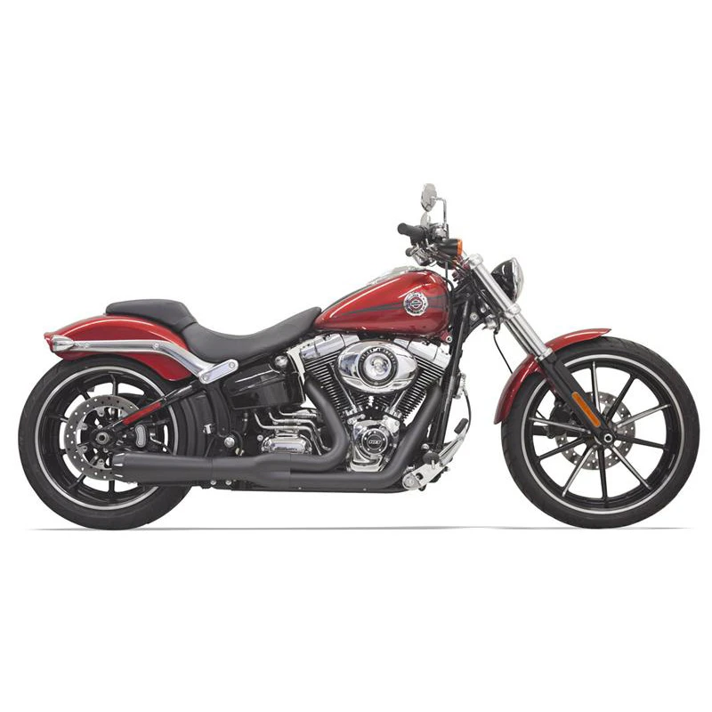 2:1 Performance exhaust system featuring stepped headers, true reverse cone megaphone muffler and a removable core with a billet end cap. Come with Full heat shields available for most models. Moderately aggresive exhaust note. PRO STREETS for all softail models. Shotgun design featuring stepped headpipes and tunable/replaceable flow-through baffles. Avialable in different styles such as turn out ends or with billet end caps. Expect an aggressive sound. Sweeper Style Pipes are a radical radius bent short headpipe with a strong exhaust sound.