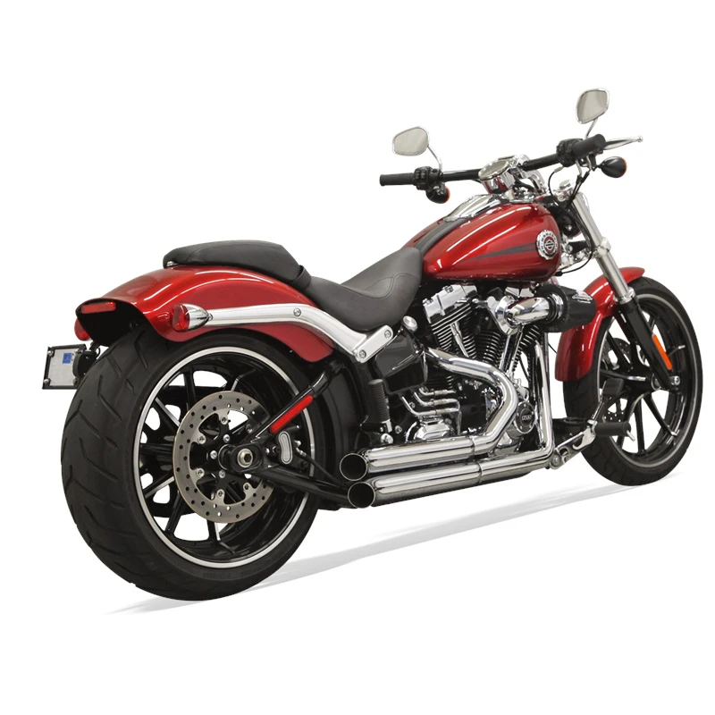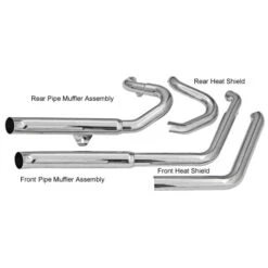 2:1 Performance exhaust system featuring stepped headers, true reverse cone megaphone muffler and a removable core with a billet end cap. Come with Full heat shields available for most models. Moderately aggresive exhaust note. PRO STREETS for all softail models. Shotgun design featuring stepped headpipes and tunable/replaceable flow-through baffles. Avialable in different styles such as turn out ends or with billet end caps. Expect an aggressive sound. Sweeper Style Pipes are a radical radius bent short headpipe with a strong exhaust sound.