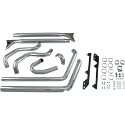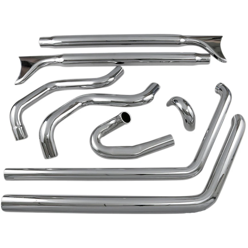 2:1 Performance exhaust system featuring stepped headers, true reverse cone megaphone muffler and a removable core with a billet end cap. Come with Full heat shields available for most models. Moderately aggresive exhaust note. PRO STREETS for all softail models. Shotgun design featuring stepped headpipes and tunable/replaceable flow-through baffles. Avialable in different styles such as turn out ends or with billet end caps. Expect an aggressive sound. Sweeper Style Pipes are a radical radius bent short headpipe with a strong exhaust sound.