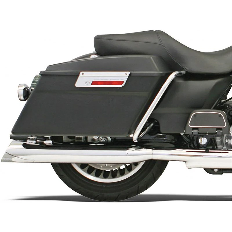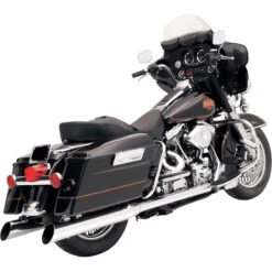 SLIP-ON Mufflers for Road King®, Road Glide®, Dresser and Twin Cam 88® models and later. Slip-on mufflers for touring models are available in five styles; slash cut, straight cut, slice cut, slant cut, megaphone and a 4″ straight can. Mufflers feature 4″ diameter 16 guage steel construction with tunable and replaceable flow-through baffles. Mufflers are finished in a show-quality chrome finish.