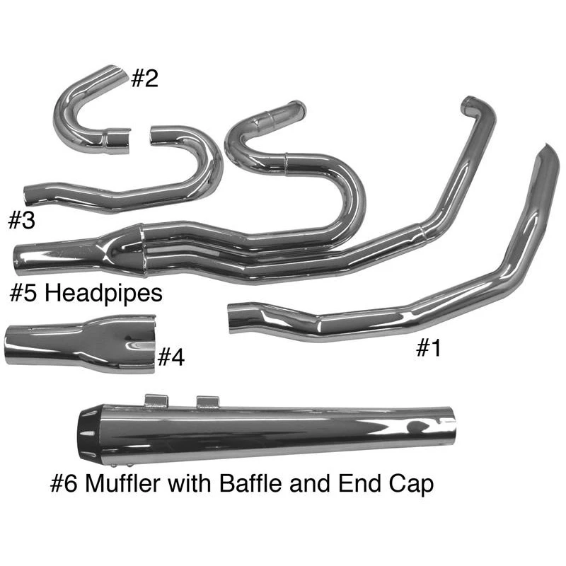 2:1 Performance exhaust systems feature stepped headers, and choice of muffler options with either a true reverse cone megaphone muffler or a 4″ straight can muffler with a removable core with and polished billet end cap. Heat shields available for most models.Harley® riders can realize the benefits of a “True Dual” crossover system that performs as good as it looks. Bassani’s “True Dual” Power Curve. Designed to give proper port angle and tuned rear pipe length. The Bassani Power Curve offers improved low-end torque, appearance and an unmistakable exhaust tone.
