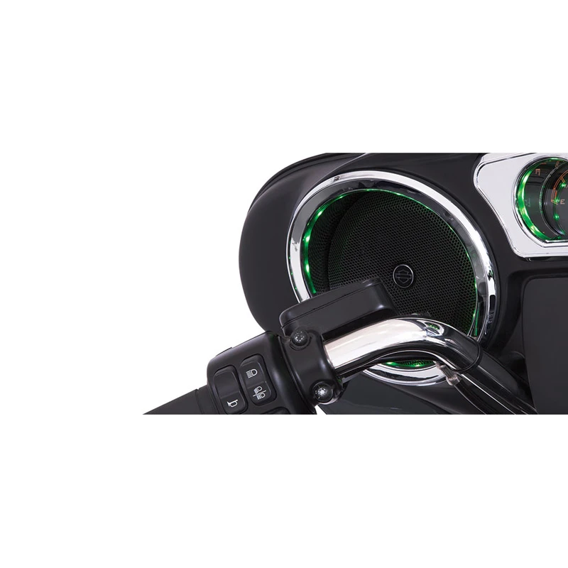Ciro’s 42100 Lighted Speaker Accent is made specifically for Harley-Davidson FLH models (2014-current). Does not fit stage 2 boom audio fairing speakers.