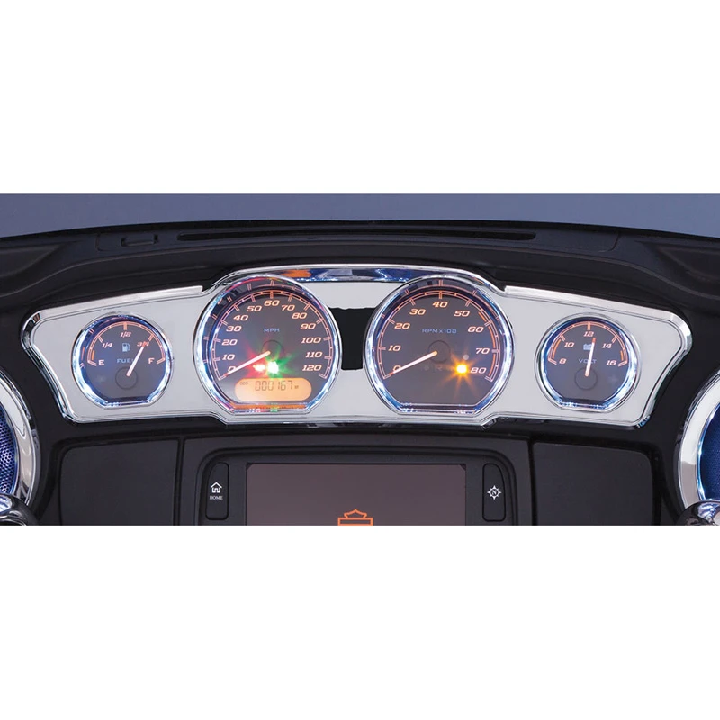 Ciro has set the bar high with the design of their Chrome Dash accent. This LED backlight accessory allows you to customize your fairing and light the gauges with a multitude of colors.