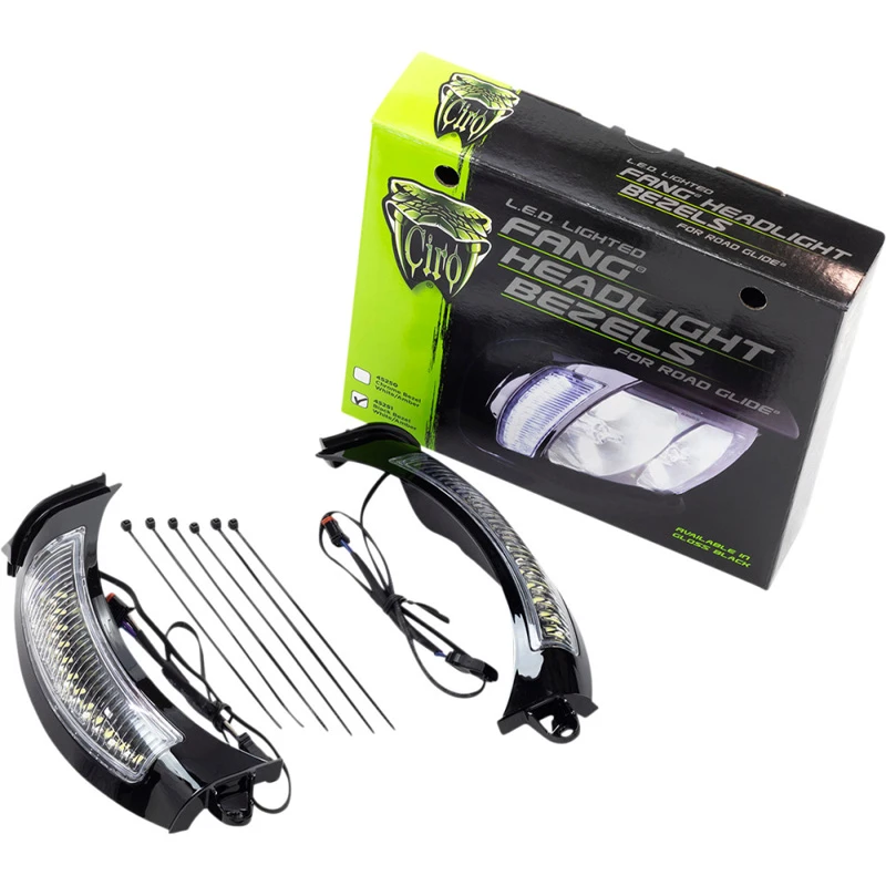 Ciro’s 45251 Fang LED Headlight Bezel, Black Finish is made specifically for Harley-Davidson Road Glides (2015-current).
