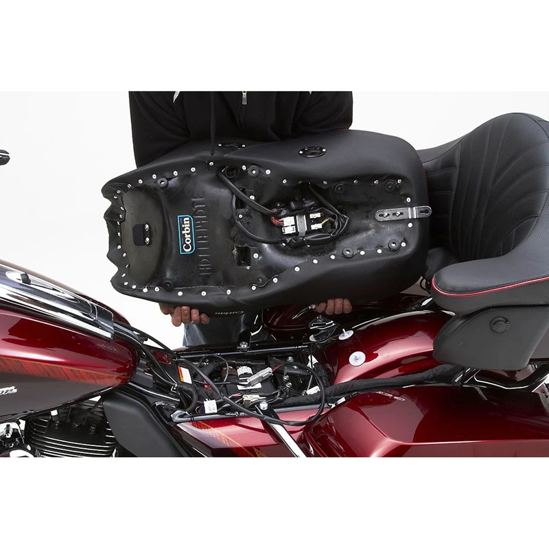 - Heated models are available in two styles. One includes a wiring pigtail that integrates with the HD harness on bikes that included a heated seat from the factory. The other seat model includes a Corbin designed wiring harness that integrates with your HD fusebox.