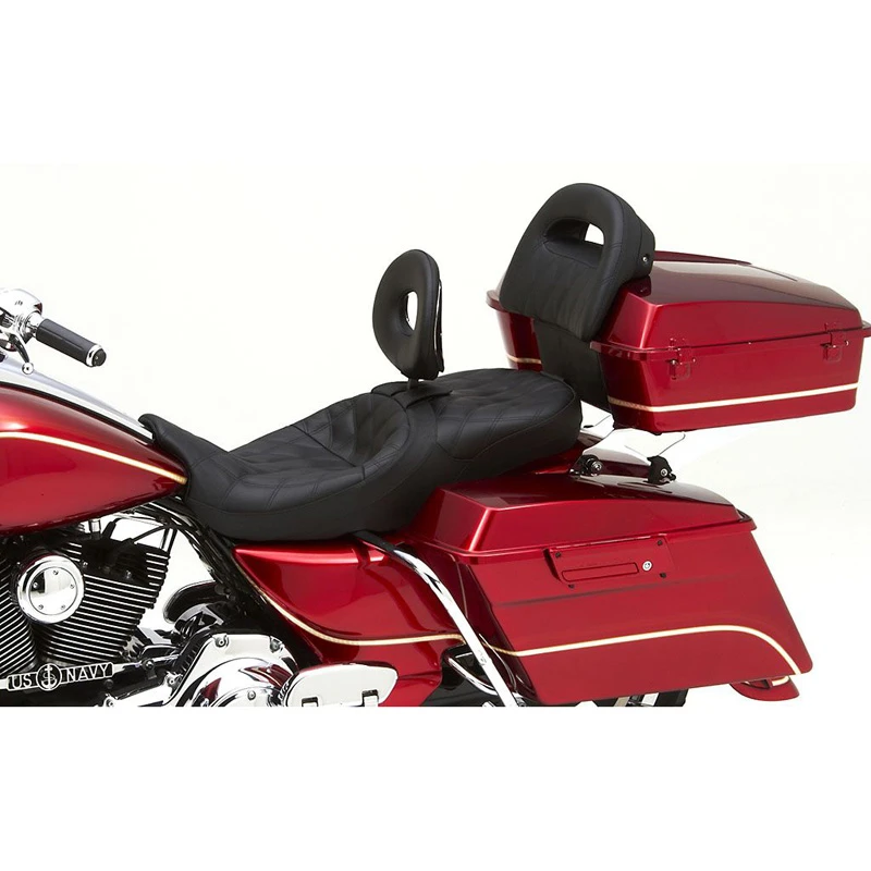 - Dual Tour saddle does not fit with passenger hand rails or OEM rider backrest.