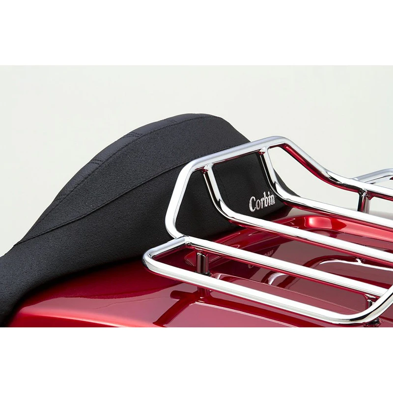 - Corbin trunk armrest works with Tour Pak mounted luggage racks.