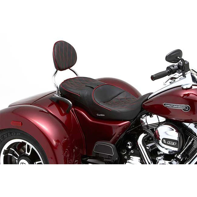 - Passenger area works with the Freewheeler integrated sissybar or a Corbin backrest in the rear.