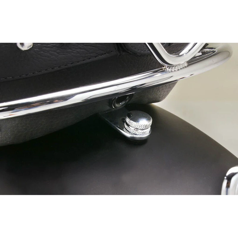 - Installation is simple with a tongue in the front and a single bolt into your fender at the rear. For a very clean installation that requires no tools, we offer a chromed billet thumbscrew (#ACST-20). Just slide the saddle into place nose-first and tie down the rear into the stock location in your fender.