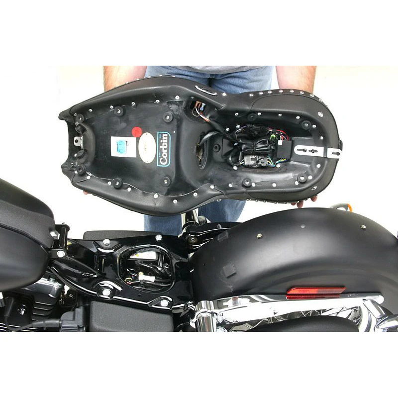 - If you opt for electric heat, the saddle will include a pigtail wire that integrates directly with your Harley fuse box (complete instructions included). 2013 model Dyna-Glides will wire directly to the battery instead of the fusebox. Your seat will include a wiring kit that enables either style installation.