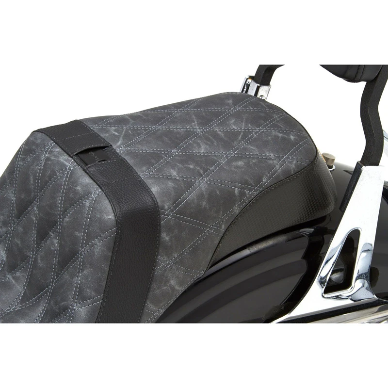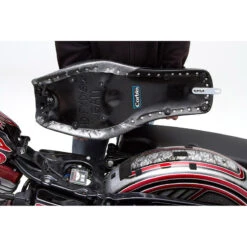 - Corbin’s Widowmaker saddle installs easily with a tongue in the front and a single bolt into the fender at the rear. Uses stock threaded fender insert.