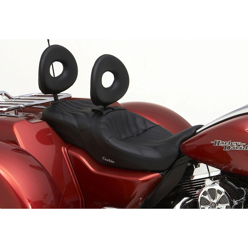 - Dual Tour saddle offers 4.5 inches of vertical support up front or nearly fifteen inches with backrest in place. Passenger backrest adds over ten inches of vertical support for your copilot.