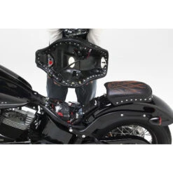 - Corbin’s 50’s pillion will not fit properly with the HD sissy bar that has attached luggage rack.