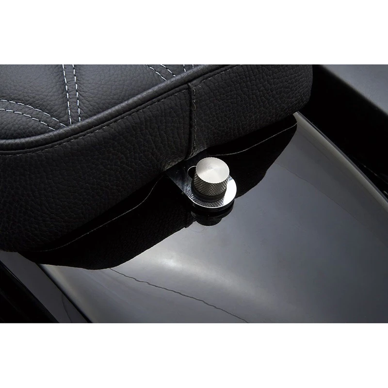 - Pillions mount to solo saddle at the front and stock bolt location at the rear. Use one of our machined stainless steel thumbscrews at the rear for tool free removal.