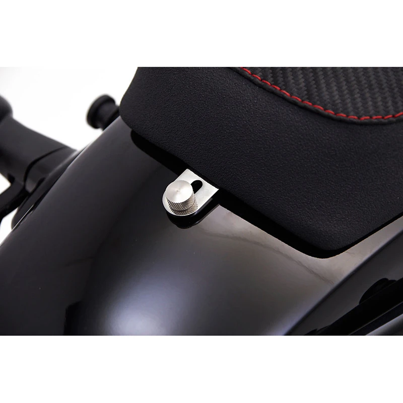 - Pillions install into stock locations in your fender. Use a Corbin thumbscrew at the rear for a clean tool-free mount.