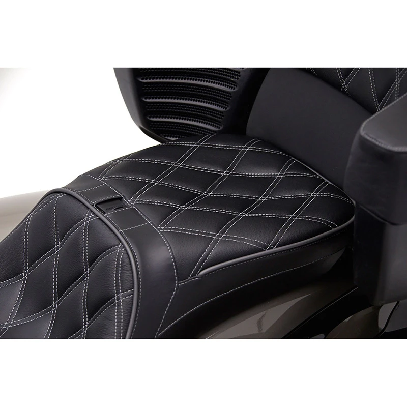 - Passenger seating is widened and sculpted to curb sliding in the saddle.