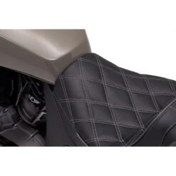 - Ergonomically designed seating adds comfort. Saddle fits perfect to tank, fender and sides.