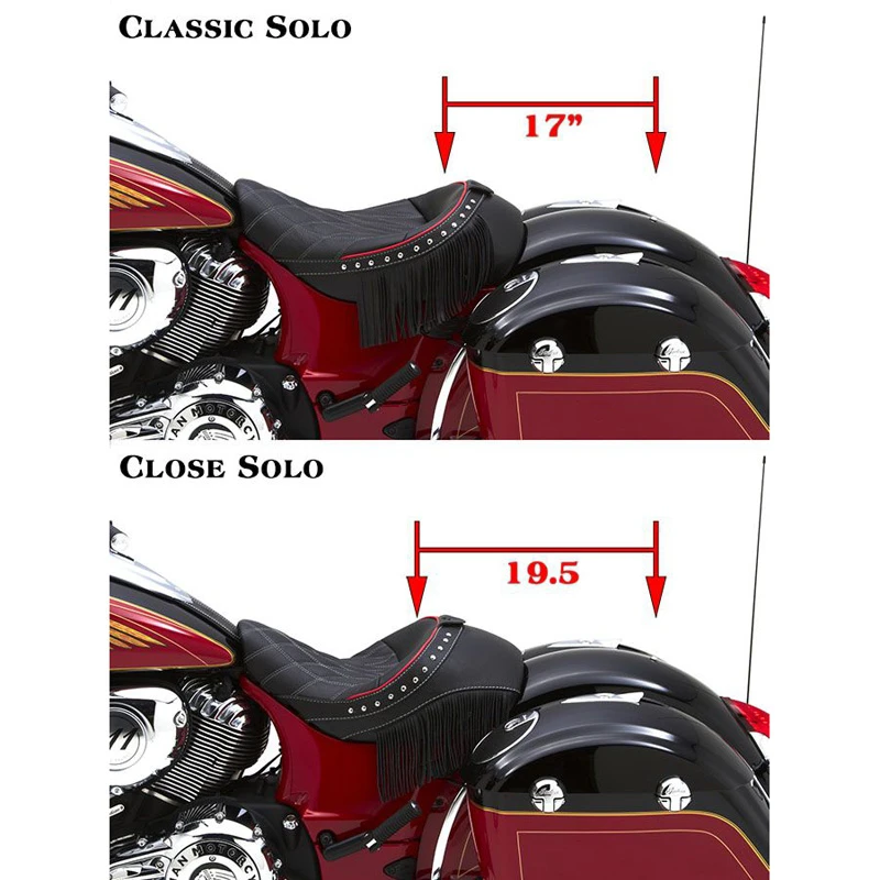 - Corbin’s Close Solo saddle provides an excellent solo look or can be combined with a variety of pillion pads or Indian’s fender mount rack.