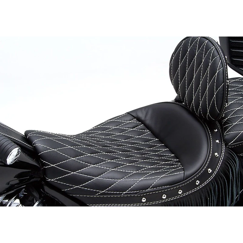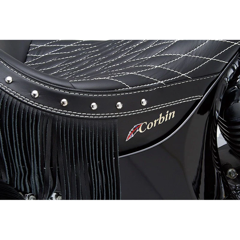 - Corbin’s Classic Solo saddle provides an excellent solo look or can be combined with a variety of pillion pads or Indian’s fender mount rack.