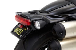 The Corbin undertail kit includes a black license plate frame to complete the look and comes pre-bent to conform to the shape of the fender. Naturally, you will need to curve your license plate to match.