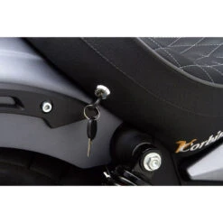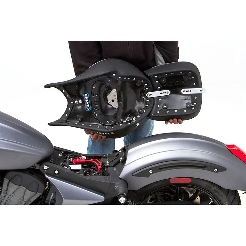 - Solo saddle mounts with a tab in the front and our key lock in the rear. Front tab uses the stock front mounting screw with our spacer added. Corbin’s seat lock tab installs into a stock location on your Octane chassis with all hardware included. Once these brackets are installed, the Classic Solo will install and remove with our key lock system.