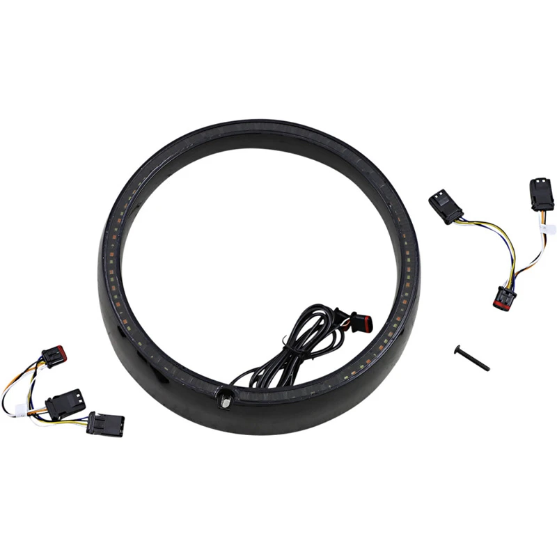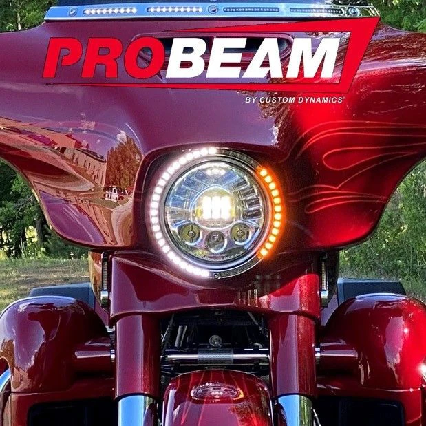 ProBEAM 7″ LED Headlamp Trim Ring contains 48 White LEDs that stay on as a running light and 12 Amber LEDs per side that blink as left and right turn signals. ProBEAM utilizes a unique reflector technology and automotive grade LEDs mimicking the smooth, bright light output of our ProBEAM Motorcycle LED Turn Signals, all sealed behind a smoked lens. Simple plug and play installation offers a direct replacement for the factory headlamp trim ring (OEM Part 67712-83B) and can be used with the factory headlamp or any aftermarket headlamp. Â
