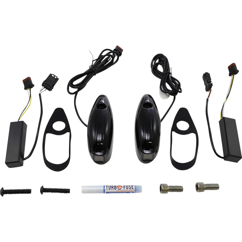 Streamline the look of your Road Glide with ProBEAM® Low Profile LED Turn Signals for Road Glide. The sleek, aluminum housings are direct plug and play replacements for the OEM front bullet turn signal housings. Providing DOT/SAE compliant White DRL Running Light and full-contrast Amber LED Turn Signals behind a smoked lens. Simple plug and play installation completely changes the look of the front fairing, offering a sleeker more custom look. Available with a , Gloss Black or . Lifetime LED Warranty.