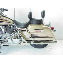 - The length of the system with the muffler is too short to use with Extended bag. We offer extended length muffler for bikes that have stretch bags. We will send a special order form to fill out.
