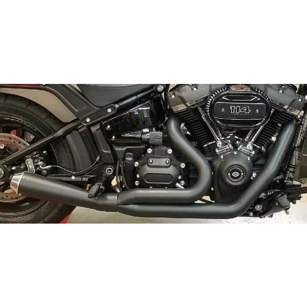 - 2:1 Softail Wide Tire M8 Abuelo Cat Up-swept Megaphone Style Muffler