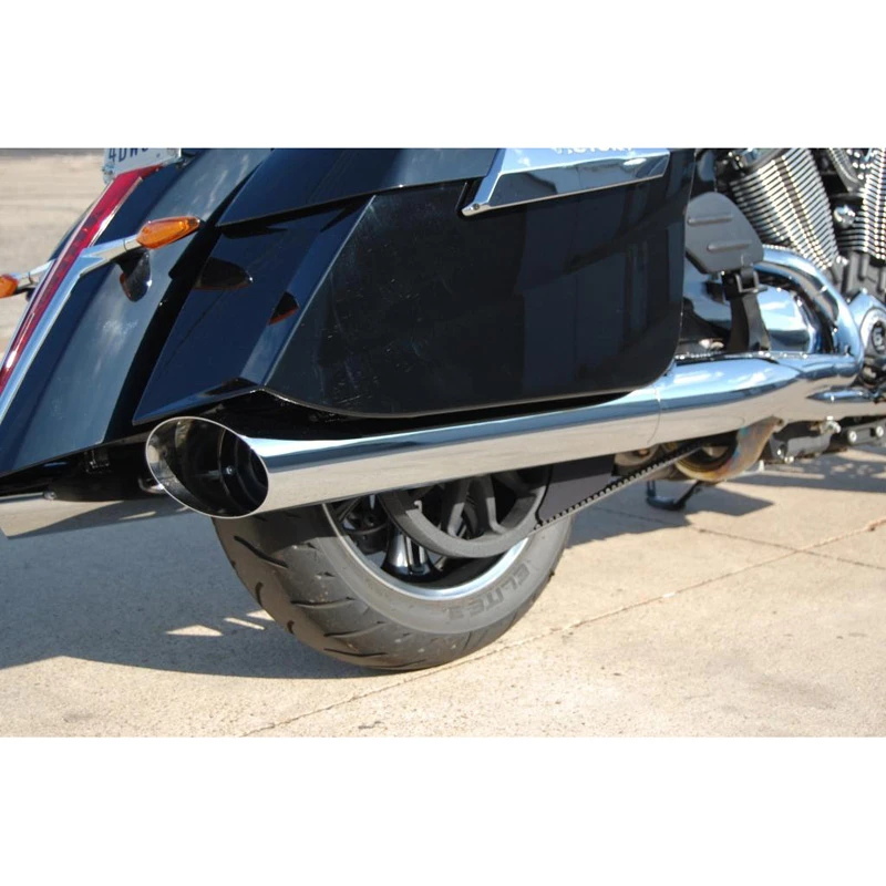 D&D 2010-2014 Victory Cross Roads and Cross Country Slip-ons for the ultimate Victory touring motorbike. You can install them in less time than it takes to complete your lunch. They utilize stock heat shields.