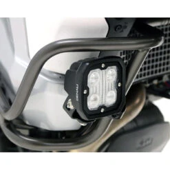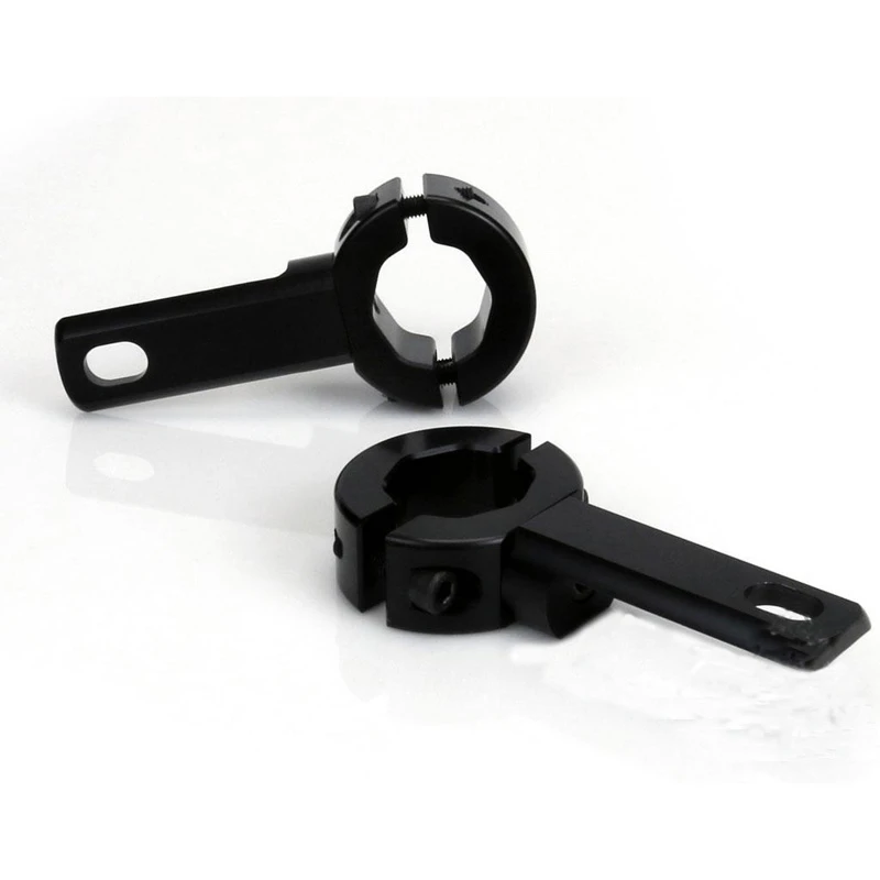 These clamps are intended for mounting lights to OEM or aftermarket crashbars commonly found on adventure and dual sport motorcycles. The clamps allow the lights to be positioned inside of the crashbars, ensuring they will be protected in a tip over.