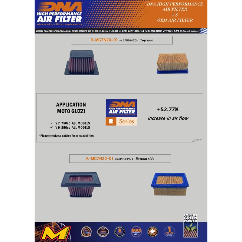 - The DNA filter has a 52.77% higher airflow than the MV Agusta stock paper filter!
