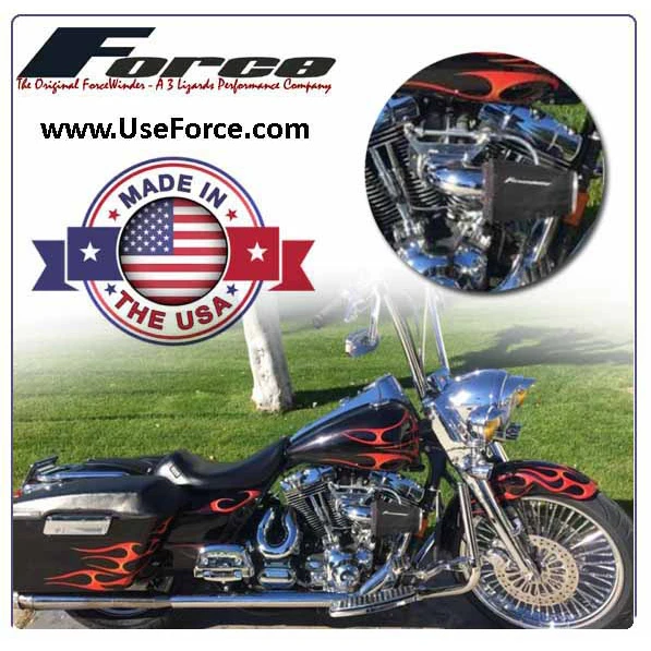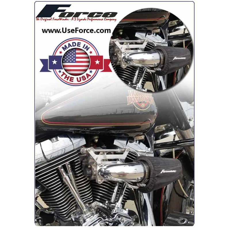 ForceWinder Kit. Exclusive Rectangular Elbow with ForceWinder Filter. Breather bolts have polished aluminum tubing set up that curves out and dumps into a crankcase breather. Killer looks with killer performance.