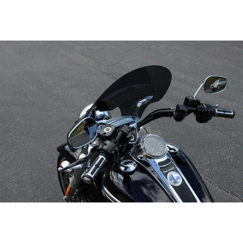 The shape of the Horizon XP / XP2 is visually recommended for larger cruisers which have a relatively open/uncluttered area around the bars (discrete clocks, etc.) and so lends itself nicely to the Harley Davidson Road Glide, Road King, Freewheeler Trike (pictured) and others. Note that the Road Glide model launched in 2015 requires the model as it has a 1 1/4″ (32mm) diameter bar.