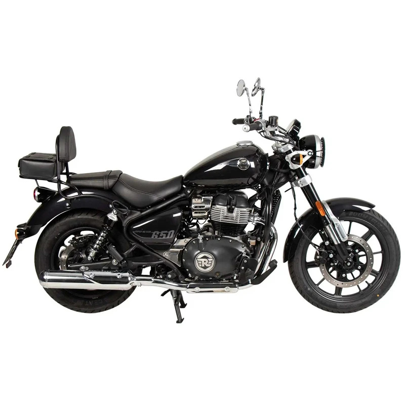 Hepco & Becker’s 611.7651 00 01 Sissybar with Luggage Rack is made specifically for Royal Enfield Super Meteor 650 (2023-current).