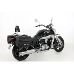 Hepco & Becker’s 611.793 Sissybar with Rack is made specifically for Hyosung GV650 Sportcruiser. This is a great accessory that adds style and functionality to the bike. The Sissy Bar provides your passenger with a backrest and on certain models, a rear rack for added soft luggage. This rear rack will only accommodate soft luggage, not the hard luggage from Hepco & Becker. Hepco & Becker offer two styles being with and without a built in rear rack for the Sissy Bar.