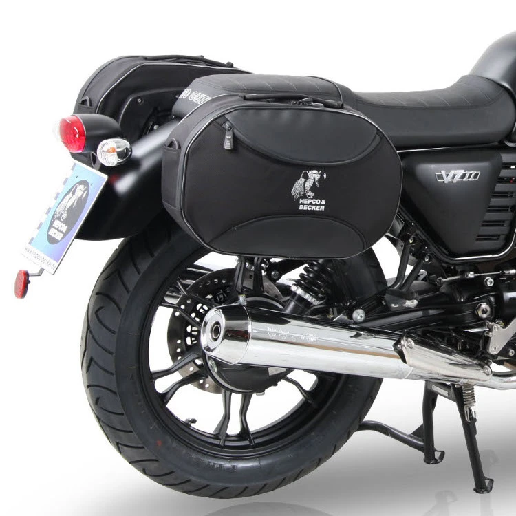 The C-Bow System consists of a very discrete C-shaped mounting plate that accepts the Street soft bags and applicable Leather bags. When the bags are off of the bike, the C-Bow holder is unobtrusive to the appearance of the bike. This allows you to leave the mounting plate on your bike without taking away from the look of the bike. To attach the bags, all you have to do is slide them onto the C-shaped mount. All C-Bow bags come with a lock and key to secure them to the C-Bow mount.