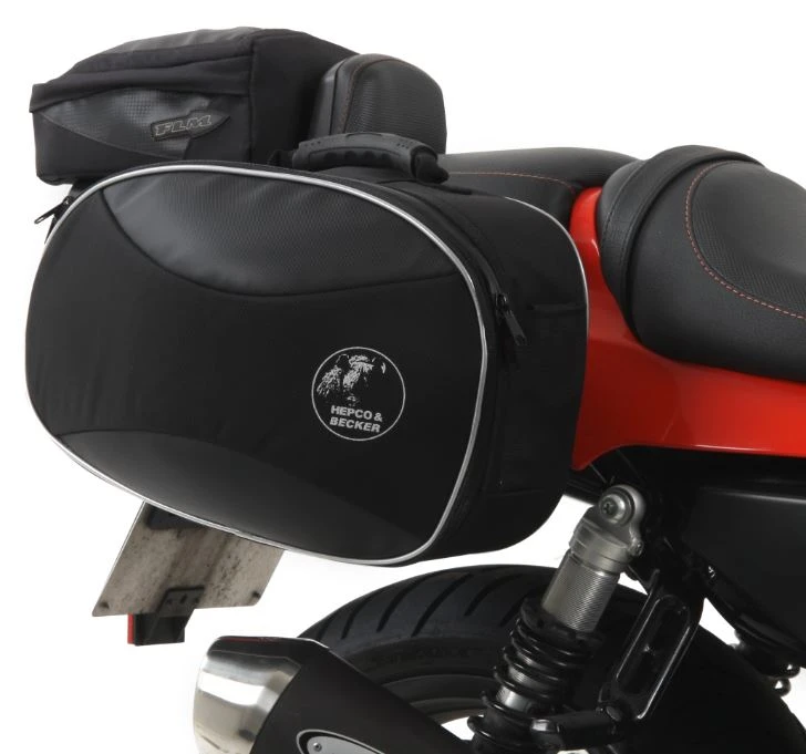 The C-Bow System consists of a very discrete C-shaped mounting plate that accepts the Street soft bags and applicable Leather bags. When the bags are off of the bike, the C-Bow holder is unobtrusive to the appearance of the bike. This allows you to leave the mounting plate on your bike without taking away from the look of the bike. To attach the bags, all you have to do is slide them onto the C-shaped mount. All C-Bow bags come with a lock and key to secure them to the C-Bow mount.