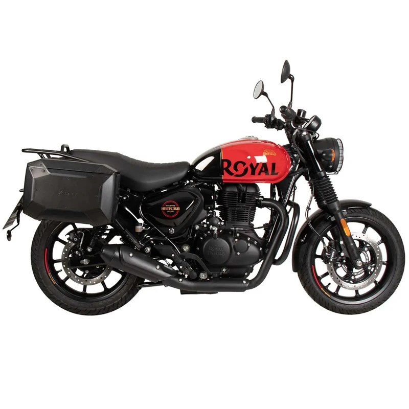 Hepco & Becker’s 630.7635 00 01 C-Bow Carrier is made specifically for Royal Enfield Hunter 350 (2023-current).
