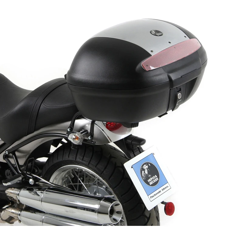 Hepco & Becker’s 650.539 01 01 Rear Rack is made specifically for Moto Guzzi C940 Bellagio / Bellagio Aquilia Nera. This rack allows you to attach any hard top case offered by Hepco & Becker. Every Rear rack is custom designed for each individual model bike. These racks are made of high quality steel tubing finished in black, silver or chrome. All racks are relatively easy to install and come with the required hardware and installation instructions.
