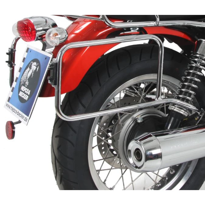 Hepco & Becker’s 650.540 00 01 Side Carrier is made specifically for Moto Guzzi V 7 Classic. This rack allows you to attach any hard side case offered by Hepco & Becker. Every Side Carrier is custom designed for each individual model bike. These racks are made of high quality steel tubing finished in black, silver or chrome. All racks are relatively easy to install and come with the required hardware and installation instructions.