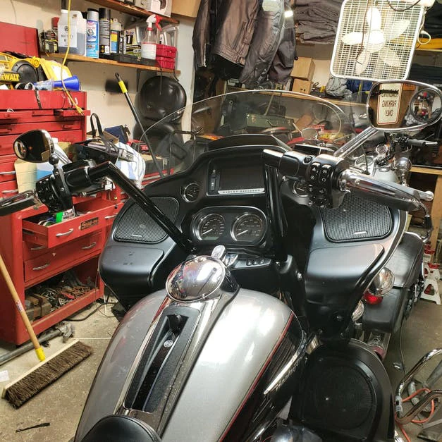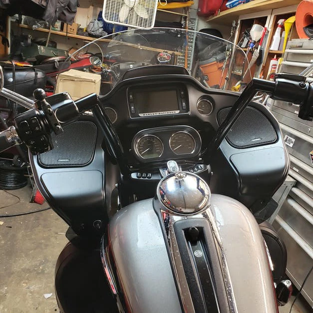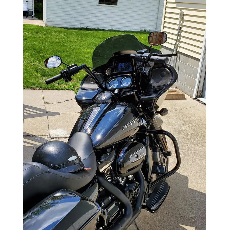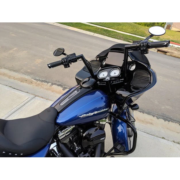 - 2015-2020 Road Glides: 10″, 12″, and 14″ tall bars can be installed without replacing your brake and clutch cables, and without extending your electrical system