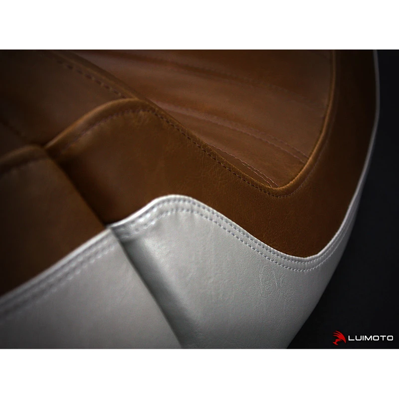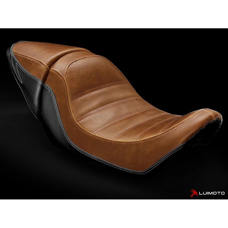 Introducing our first entry into the sport cruiser line. The V-ROD VSRC seat cover features our latest vintage style fabric available in brown, and black. This leather look material still made from our high quality vinyl, but features signs of distress, that really brings out the vintage feel. The all black model features our perforated leather look material for that sporty muscular appearance. Ribbed stitching is inspired by the fins of the V-twin, and a subtle horn-shaped stitch on the passenger seat cover is just enough to stand out without going over the top.