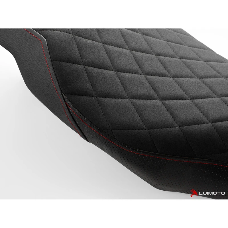 Introducing the FTR 1200 Diamond seat cover! Elevate your FTR’s style to the next level with handcrafted perfection and premium materials. Feeling sporty? Choose the all black version with perforated and fine grain synthetic leather look materials. If your feeling vintage, choose the vintage brown or vintage dark brown synthetic leather options. The luxurious synthetic suede riding surface comes stitched with a supple diamond quilt pattern to complete the look. Stand out with the finishing touch of Luimoto.