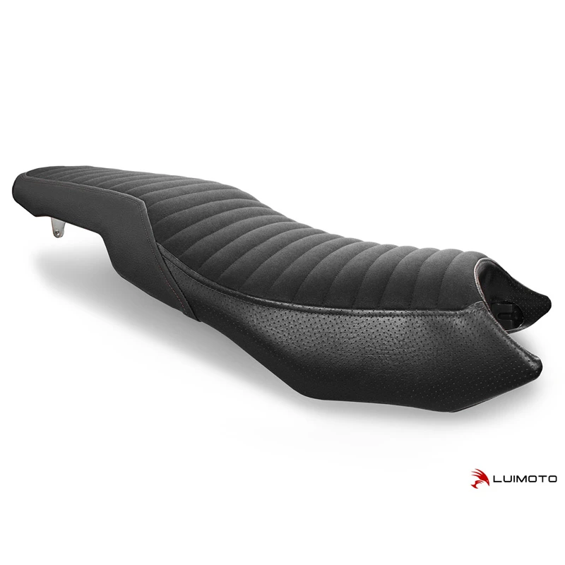Introducing the FTR 1200 Classic seat cover! Elevate your FTR’s style to the next level with handcrafted perfection and premium materials. Feeling sporty? Choose the all black version with perforated and fine grain synthetic leather look materials. Feeling vintage? Choose the vintage brown or vintage dark brown synthetic leather options. The luxurious synthetic suede riding surface comes stitched with a supple classic ribbing pattern to complete the look. Stand out with the finishing touch of Luimoto.