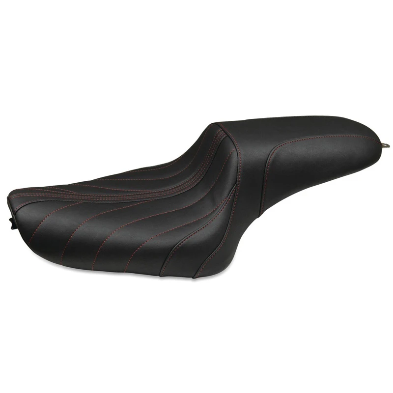 Mustang’s 74105AB Revere Journey Gravity One-Piece Seat, Black with American Beauty Red Stitching is made specifically for Harley-Davidson Sportster (2004-2021).